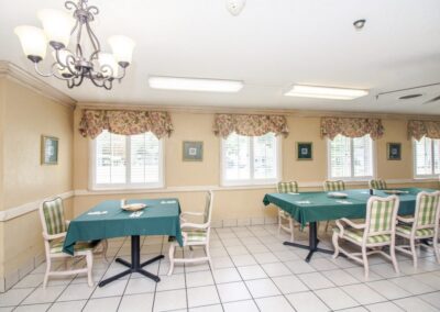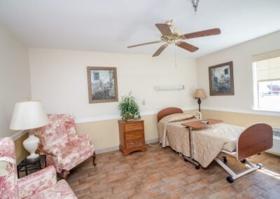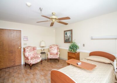 Our residents enjoy private and semi-private rooms in a safe, loving and clean environment which can be decorated with personal belongings. Housekeeping services are provided for each resident. Laundry Services are available, upon request, for our residents at no additional charge. In addition, the facility includes several spacious and inviting common areas.